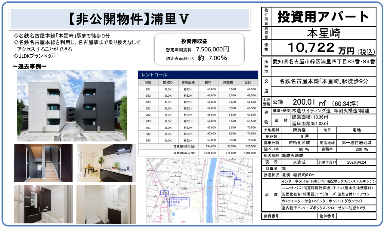 「本星崎」駅まで徒歩約9分 物件から自転車で約6分圏内にメーカー系企業が多くあるため、単身者の住居需要も期待できる 物件から自転車で約2分圏内にコンビニ・ドラグストアがあるため、急な買い出しや日用品の購入も気軽にできる