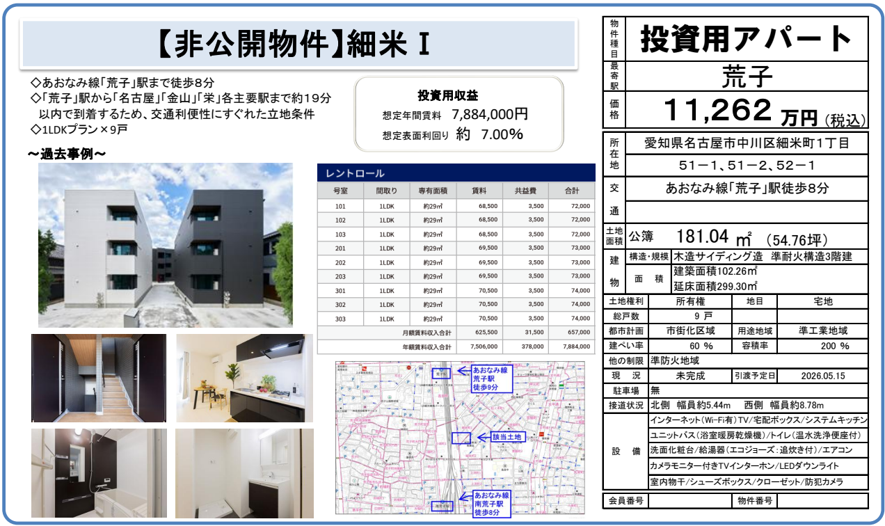 「荒子」駅まで徒歩約8分 物件が建つ中川区は倉庫や工場などが集積しているため、それらで働く単身者の入居需要も見込める
