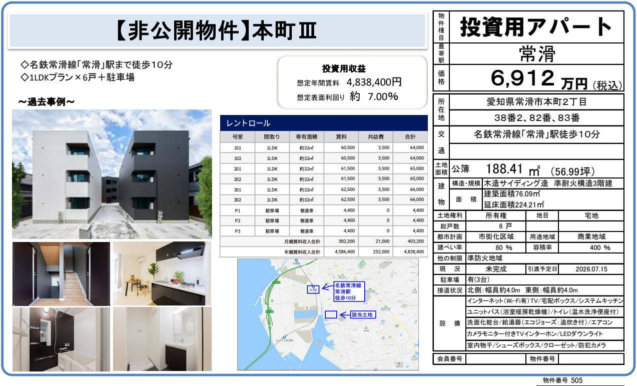 物件より自転車で約8分の場所にイオンモール常滑がある。なお、イオンモール常滑には、ファッション、食品、スポーツ用品、雑貨など、幅広いジャンルの店舗が揃っています。また、映画館やスポーツジム、ネイルサロンなどの施設もあり、レジャーや運動、美容を楽しむこともできます。 物件より徒歩約8分の場所に、スーパーがある。バロー常滑店は、地域密着型のスーパーマーケットとして、地元住民の暮らしを支えています。店内には、生鮮食品や多彩な惣菜、日用品などが所狭しと並び、品質と価格のバランスに優れたプライベートブランド「valor select」や「valor plus」も展開。隣にはドラッグストアもあるので、使い勝手がよいです。 物件より徒歩約2分の場所に内科が、自転車で約5分の場所に歯科がそれぞれあるため、かかりつけ医の確保に困らない。また、自転車で約13分の場所には総合病院もある。